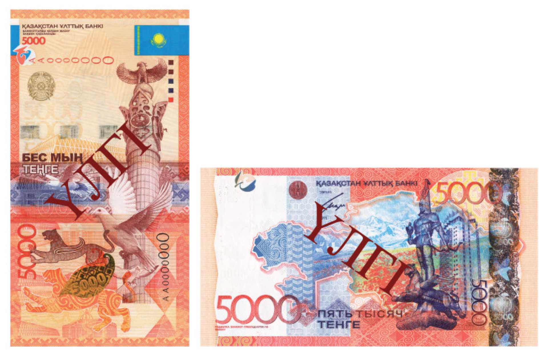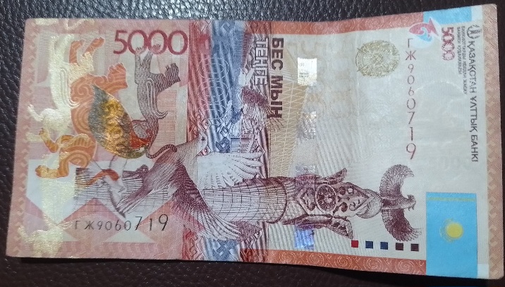 Старая купюра выглядит так:Банкнота номиналом 5000 тенге образца 2011 года