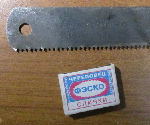 В армии у нас в цехе такая ножовка стояла. Я из полотен делал ножи. Как-то из памяти даже улетучилось, а лет через 25 от своего одноклассника узнал (пролетевшие годы мы не общались, контактов не было), что я ему такой нож из полотна в своё время дарил. Он много лет им пользовался, и считает лучшим ножом, который в своей жизни встретил, и не стало его у него просто потому, что украли. Он сказал, что у него любимым спором по поводу ножа было метание его в деревья. Я аж обалдел.