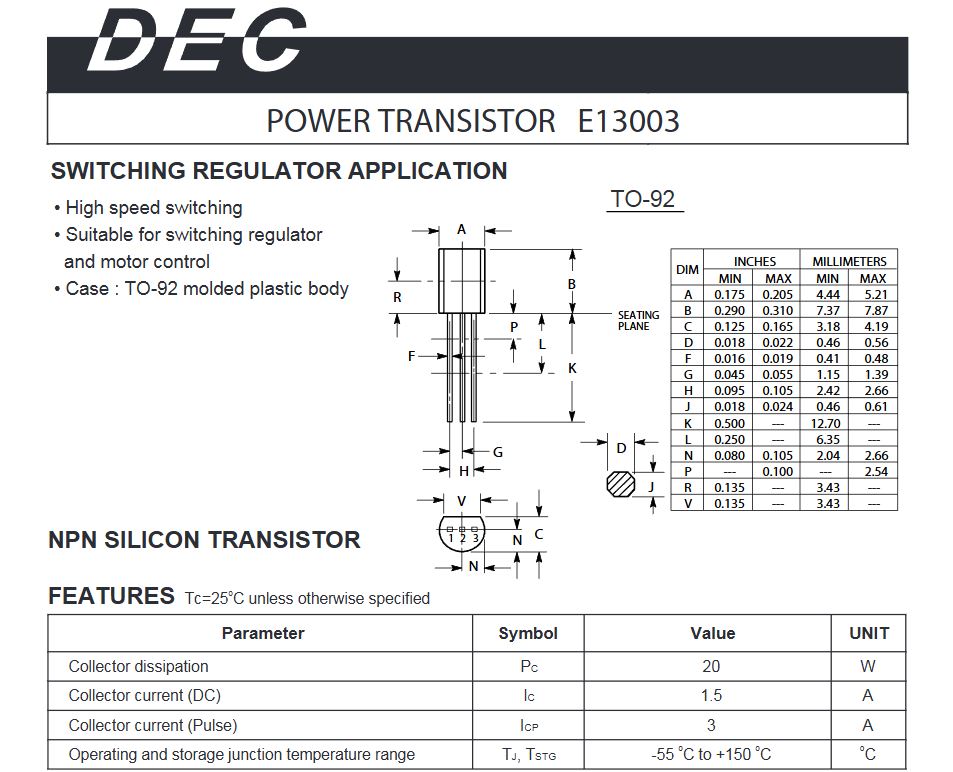 Сегодня решил взглянуть на цоколёвку 13003 в корпусе ТО-92, нарвался на такую крутую документацию