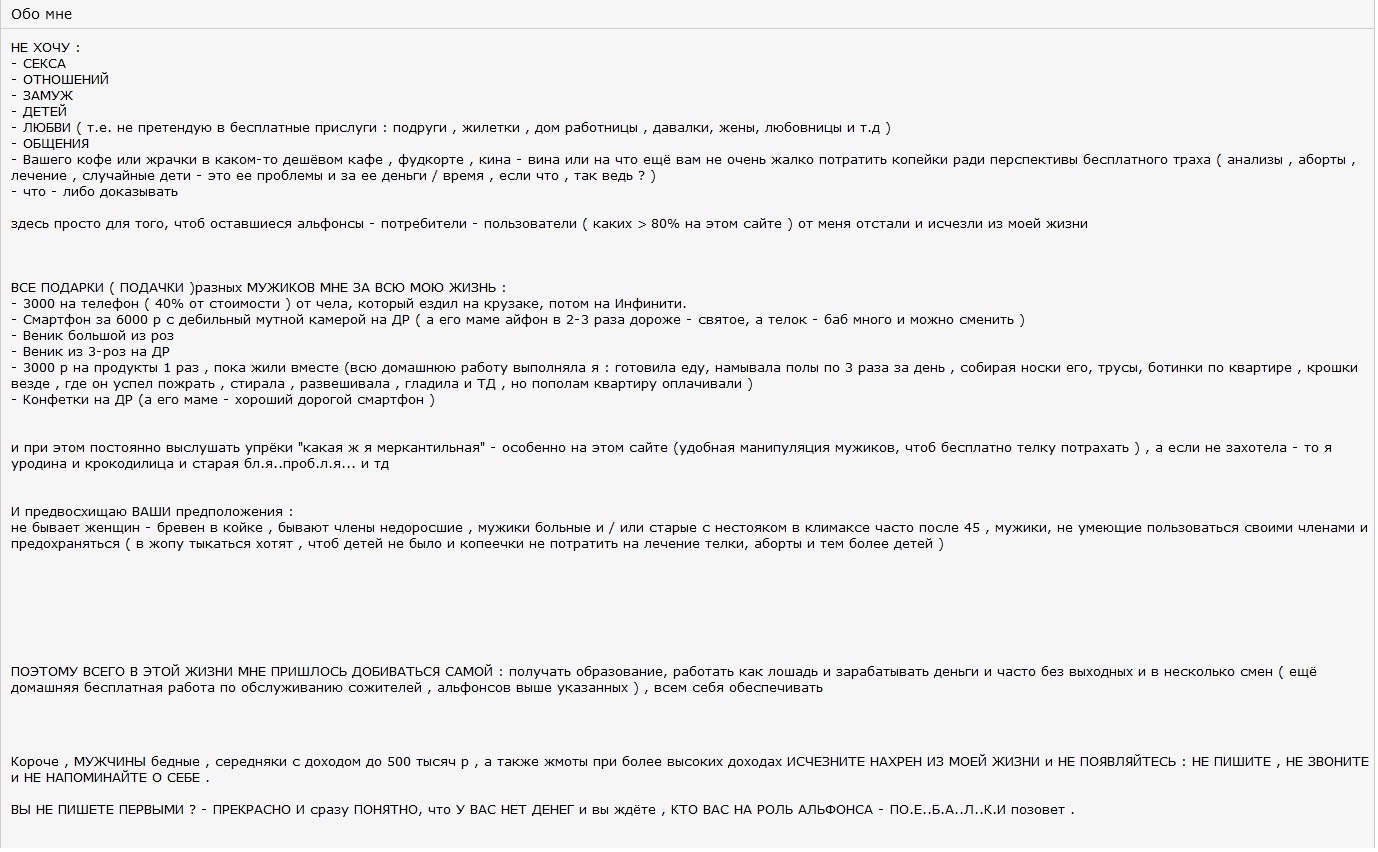 Ха-Ха-Ха!!! Вот это "экземпляр" https://dating.ru/usr9705741/ Наверно скоро исчезнет.