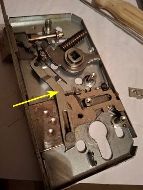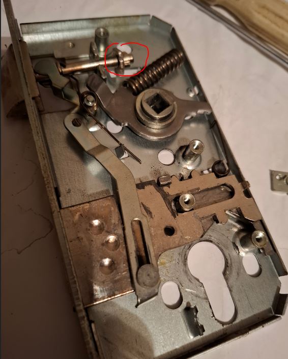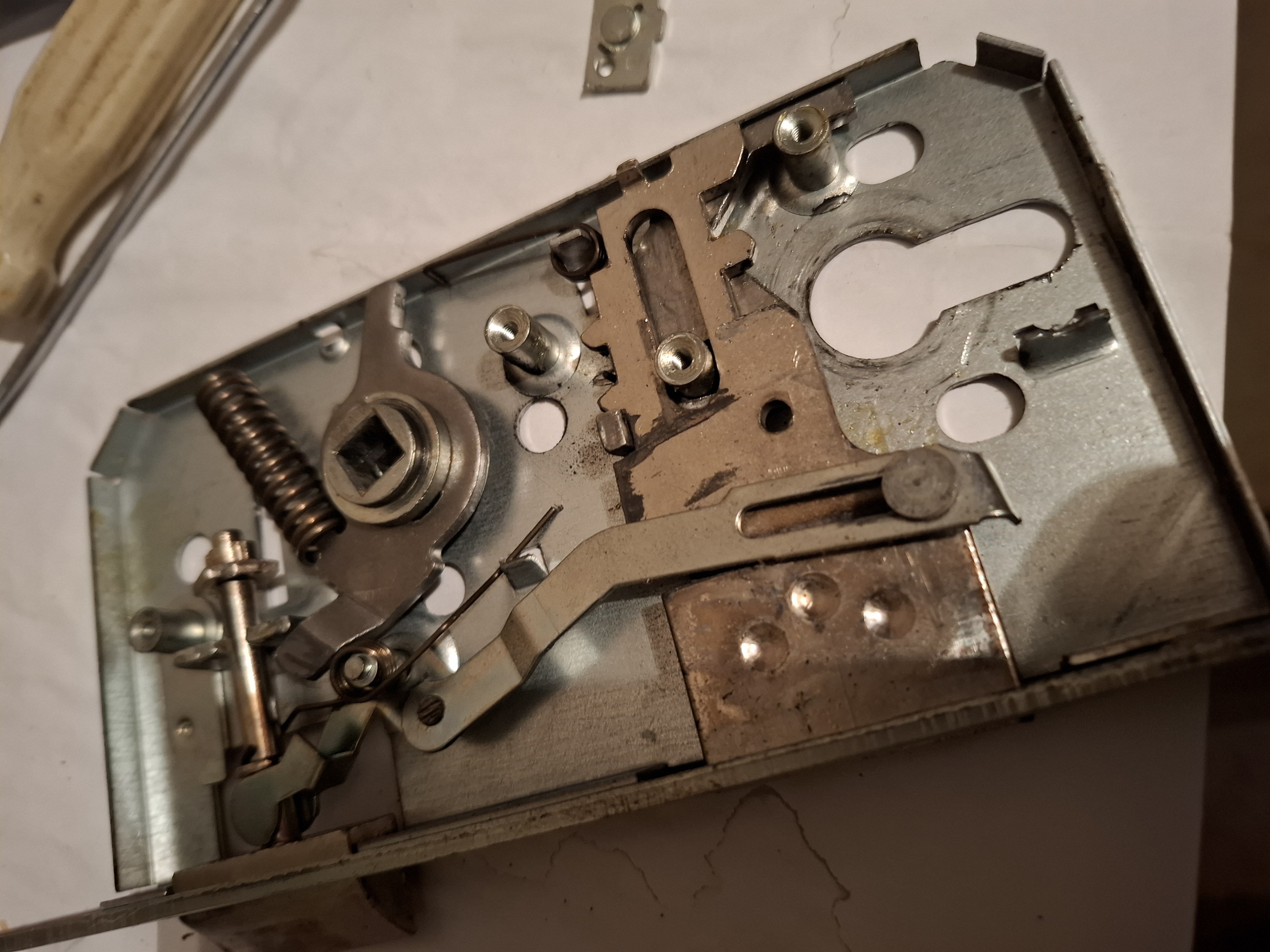 язычок\задвижка перестал нормально выдвигаться. Сегодня пошёл смотреть что за фигня.