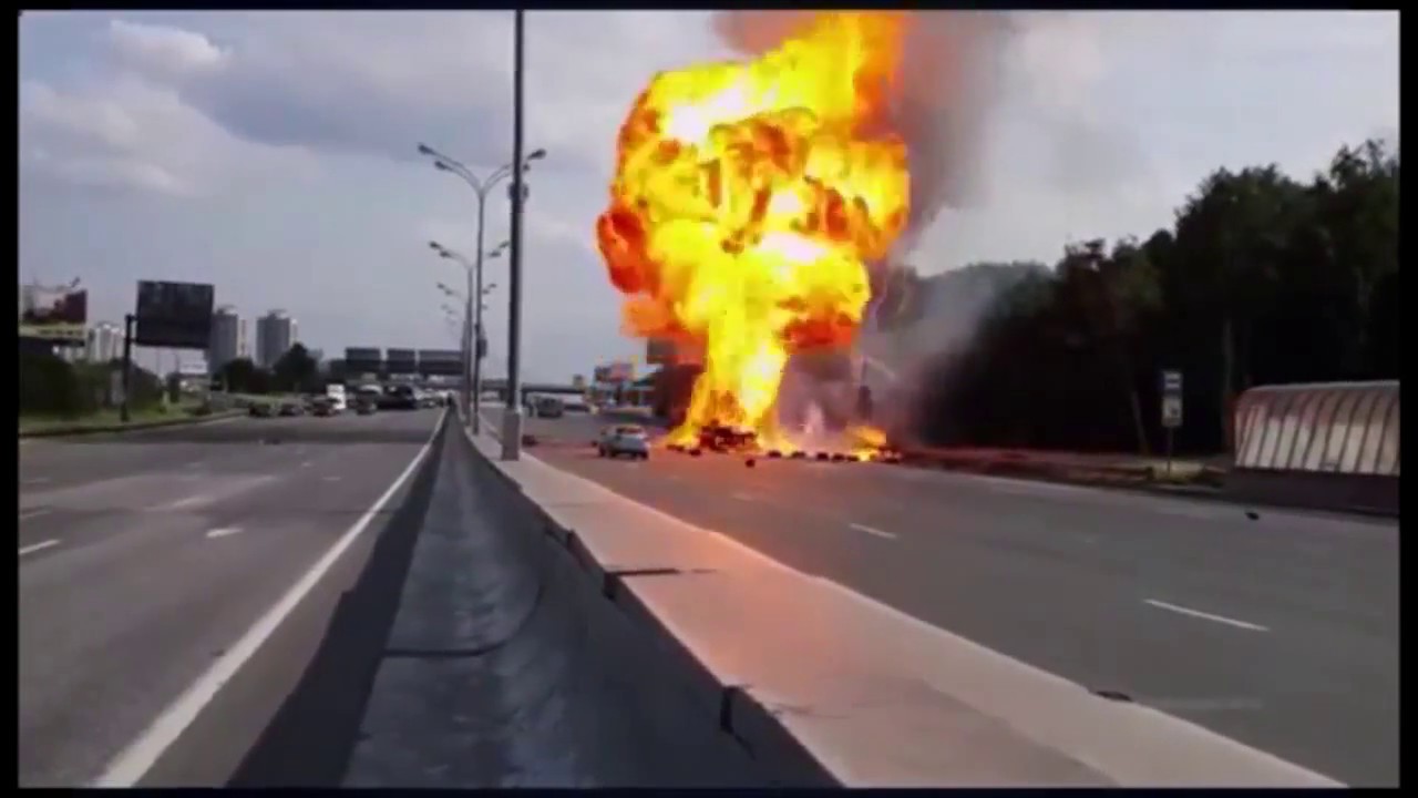 "Взрыв Газели(isuzu) и газовых баллонов на МКАДе 13.07.2013. Explosion of a truck in Moscow"