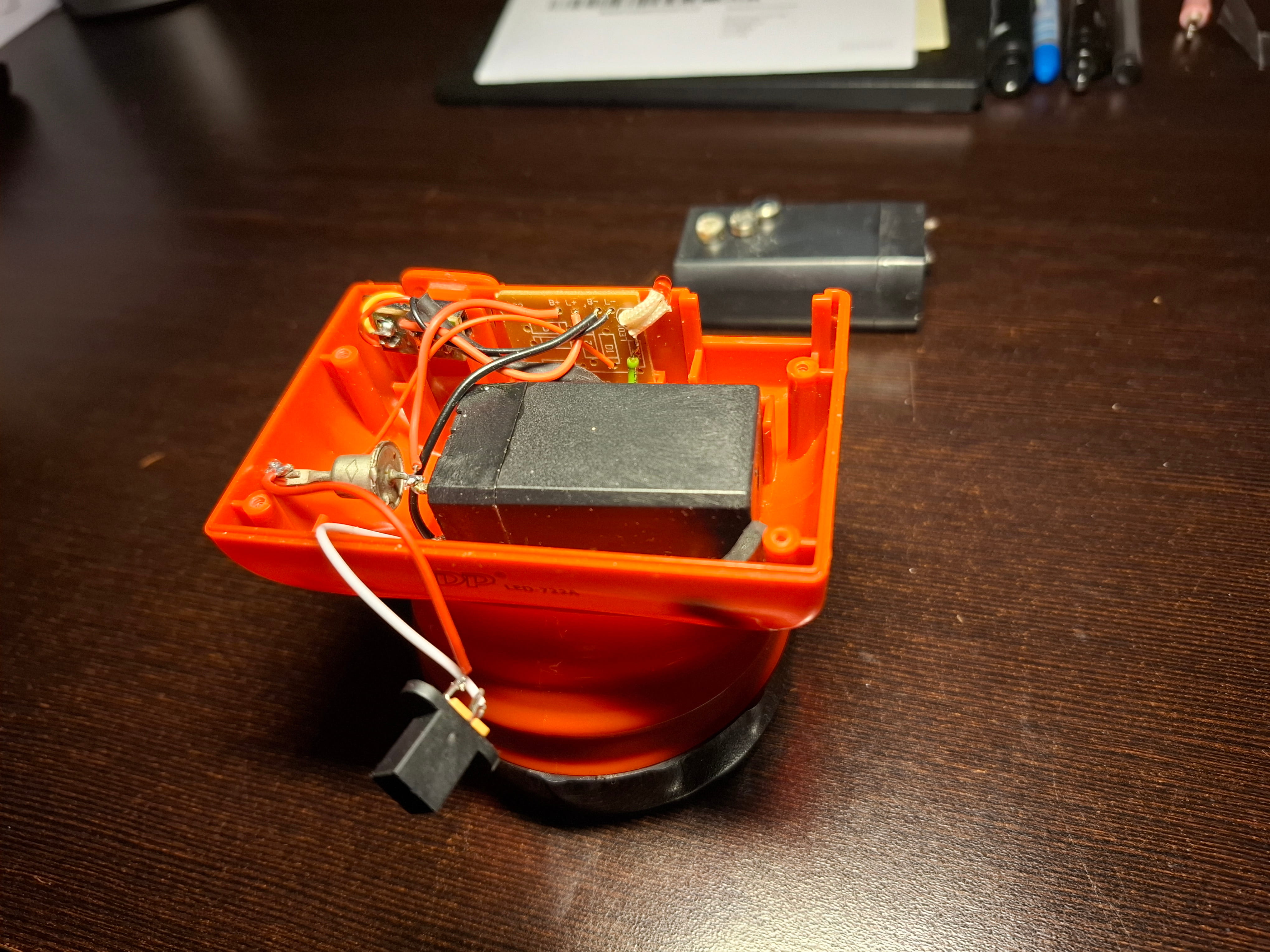 Именно. Никогда не включайте на зарядку подобные старые "несветящие" фонарики! Для начала надо разобрать и удостовериться в исправности аккумулятора.Угадать положение кнопочного выключателя невозможно, и если он окажется включённым, а аккумулятор негодным, светодиоды выгорят махом.