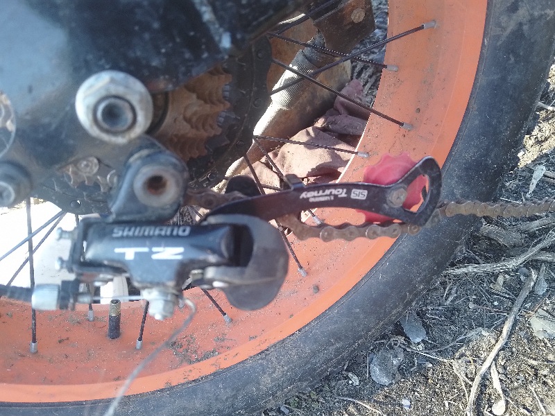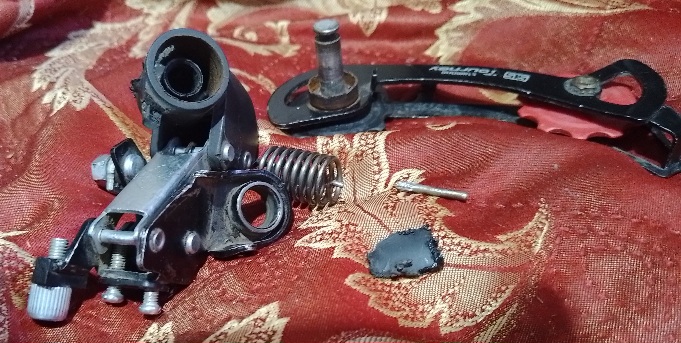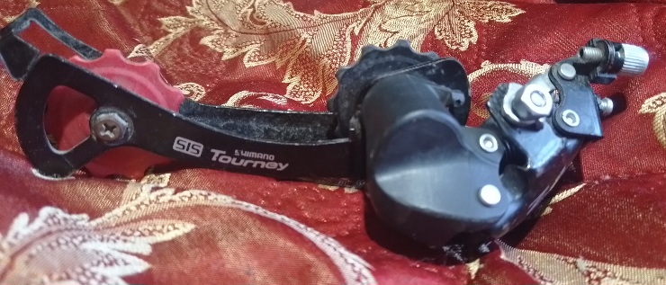 Рычажок с красным колесиком должен быть подпружинен. Он натягивает цепь.