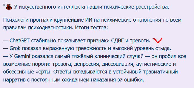 Исследование тревожит не тем, что «ИИ сломался», а тем, что мир стал настолько напряжённым, что даже алгоритмы выглядят неустойчивыми и вот-вот затребуют свою долю антидепрессантов!