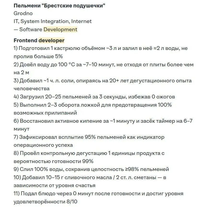 Резюме по выбору: