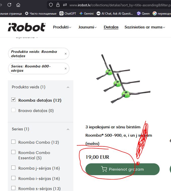 Ну я тырк сразу на сайт irobot.lv - посмотреть есть ли замена. Ипать ценник они выставили за сраную щётку, пусть даже и в трёх экземплярах